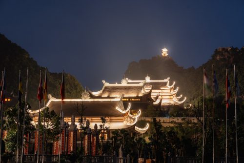 Sau đó quý khách ra bến thuyền di chuyển vào thăm quan chùa Tam Chúc – Ngôi chùa linh thiêng được xây dựng với hàng nghìn bức tranh bằng đá được ghép tỉ mỉ, cẩn thận bởi đôi bàn tay tài hoa của những người thợ thủ công lành nghề. Sau khi bước qua cổng Tam Quan rất lớn quý khách đi bộ lên chính Điện sẽ phải đi qua Vườn Cột Kinh – mỗi cột nặng khoảng 200 tấn; dọc 2 bên cổng là 2 con đường lớn để đến với Tam Điện nguy nga với 3 điện chính: Điện Quan Âm, Điện Tam Thế, Điện Pháp Chủ – mỗi điện thờ một vị Phật mang từng ý nghĩa linh thiêng khác nhau và lên tới đỉnh thăm quan chùa Ngọc. Chùa Ngọc tọa lạc trên đỉnh núi Thất Tinh, đây là một trong những hạng mục chính của chùa Tam Chúc. Để có thể chiêm ngưỡng được ngôi chùa này bạn sẽ phải vượt qua 299 bậc thang bằng đá. Đứng trên chùa Ngọc bạn sẽ được phóng tầm mắt chiêm ngưỡng một khung cảnh mênh mông, non nước hữu tình, vô cùng yên bình và tự tại.